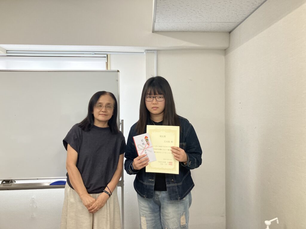 この4名には、校長賞とともに 奨学金2万円 が贈られました。努力の成果が実を結び、学校全体にとっても嬉しいニュースとなりました🌸
