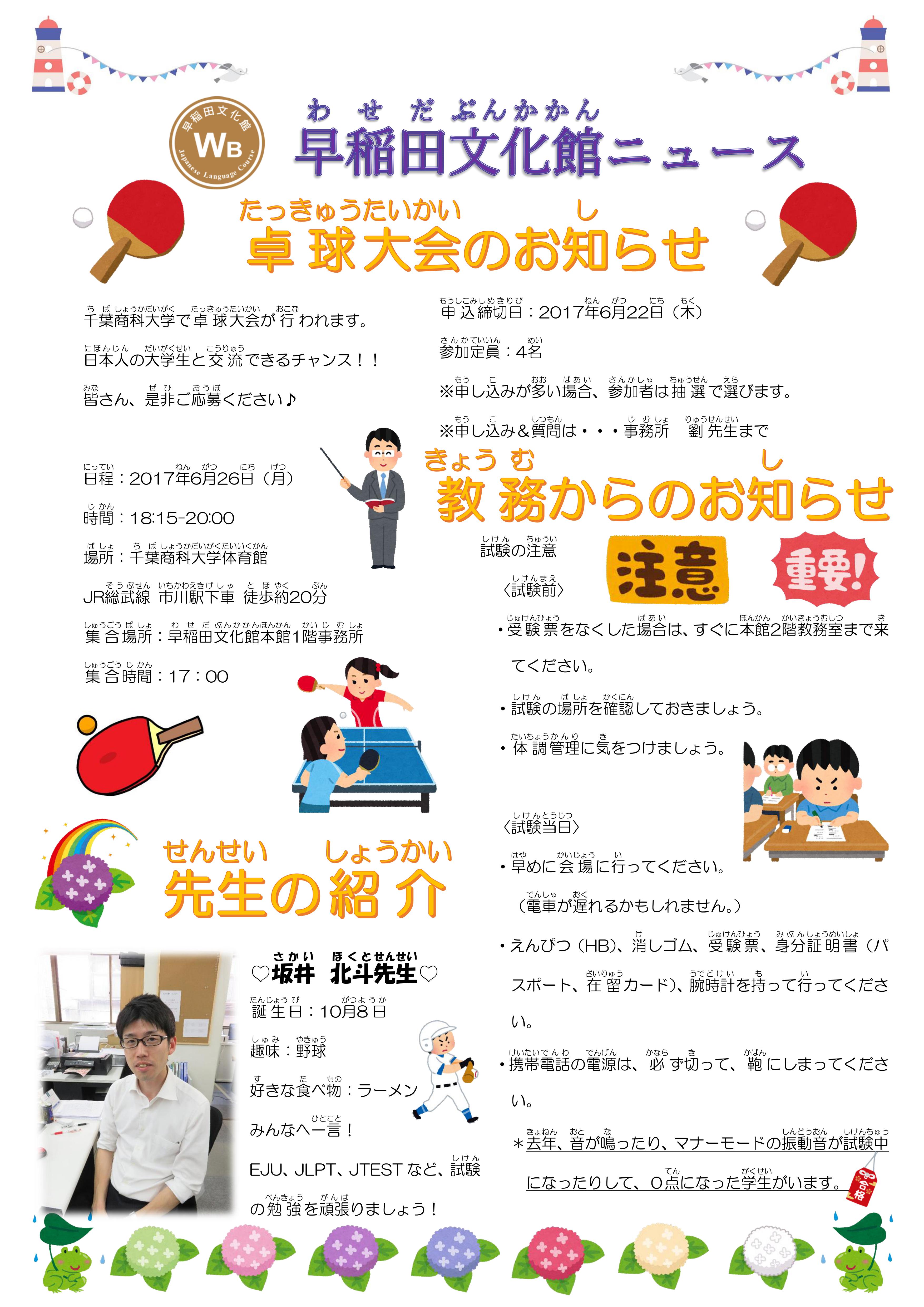 Новости от Васэда Бункакан (2017 год, ию́нь)